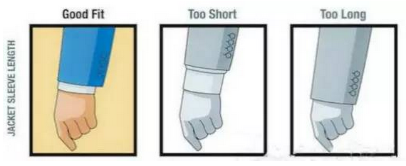 2.袖長:西裝的袖長以襯衣能夠顯露袖口1.5~2cm為最好。